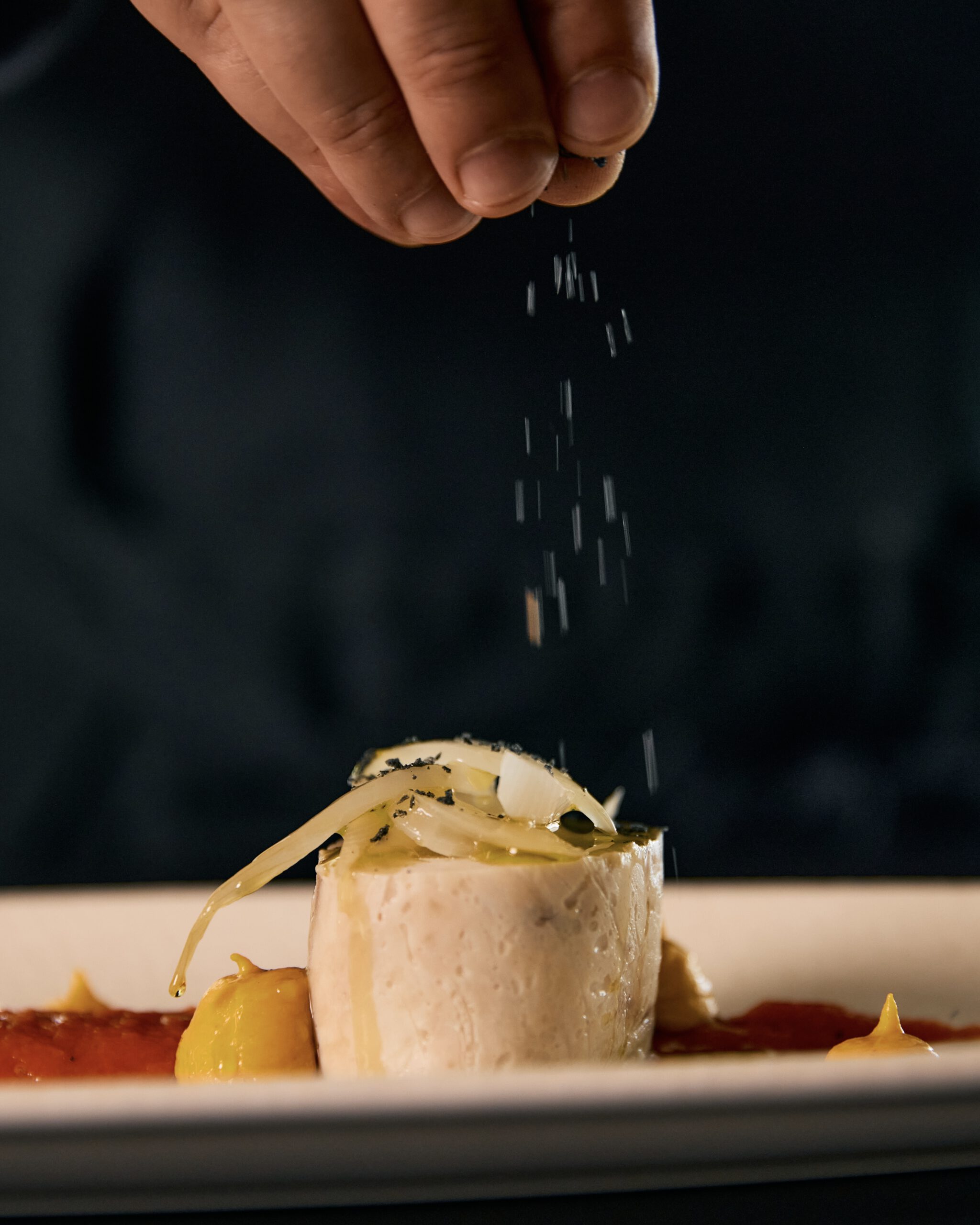 La sala, con sus amplios ventanales que se abren a la naturaleza, se transforma en un escenario perfecto para comidas tranquilas, donde la conversación fluye sin estridencias. La iluminación tenue, el servicio atento y la cuidada presentación de cada plato contribuyen a crear una atmósfera de pura indulgencia. Es la oportunidad de disfrutar de una copa de vino local, maridada con una selección de productos de cercanía y en un ambiente donde la prisa no tiene cabida.