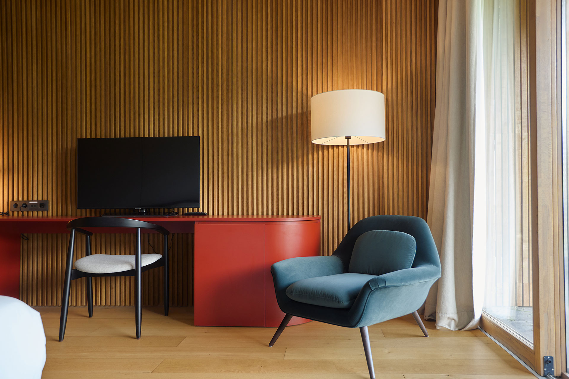 Cada habitación está diseñada para prolongar el bienestar. Con vistas a la naturaleza, interiores cálidos y una cuidada selección de materiales, nuestros espacios invitan a la calma y a reconectar con uno mismo.