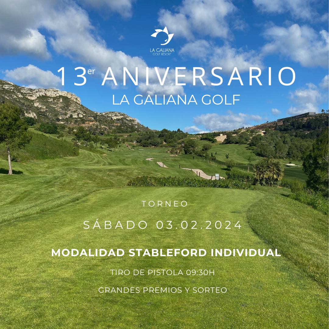 El próximo sábado 3 de febrero celebramos nuestro 13 Aniversario de La Galiana Golf y nos encantaría poder celebrarlo contigo en nuestro Torneo Aniversario. Gracias por formar parte de este gran proyecto que tantas alegrías nos ha dado estos 13 años.